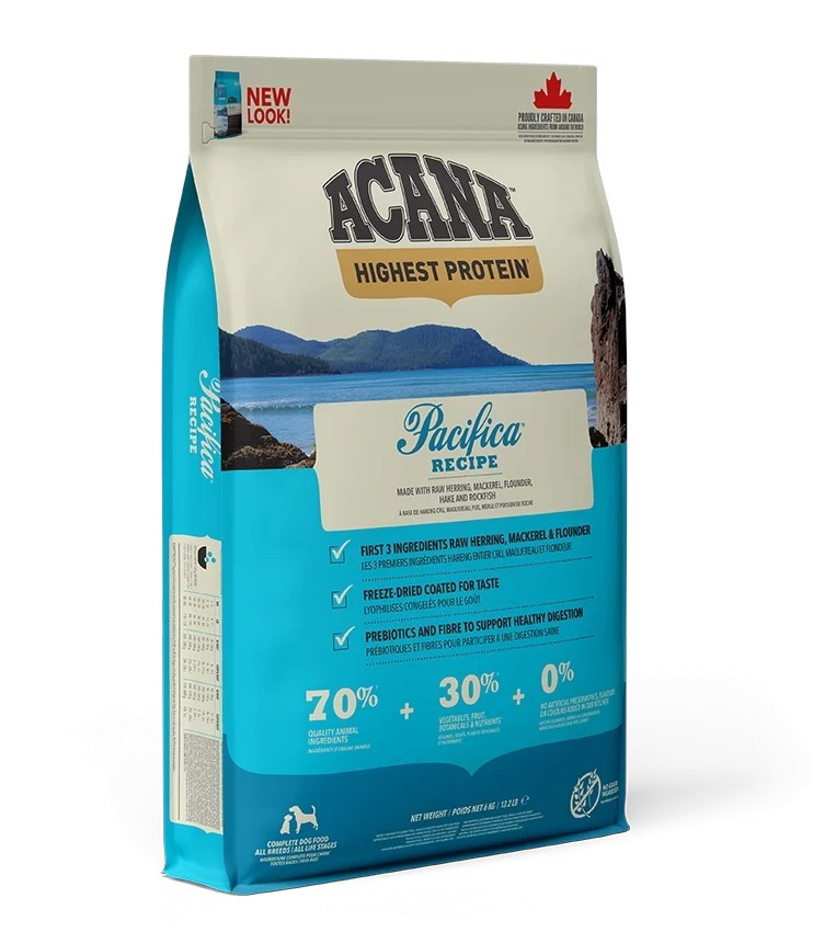 Az alacsony szénhidráttartalmú és halfehérjékben gazdag ACANA Pacifica biztosítja az összes fajtájú kutya tökéletes kondícióját bármely életszakaszban. Érdemes átolvasnod az összetétel listáját