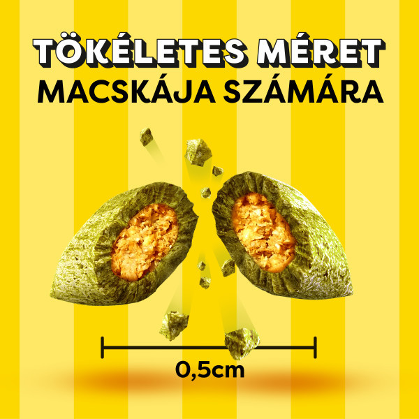 Felnőtt macskáknak max. 20 darab naponta. Junior cicáknak max. 6 darab naponta. A napi etetési mennyiség kialakításakor kérjük vegye figyelembe a jutalomfalat mennyiségét is. Száraz, hűvös helyen tárolandó. Felbontás után tartsa jól lezárva és 4 héten belül használja fel. Ne feledkezzen meg friss ivóvizet biztosítani kedvence számára.