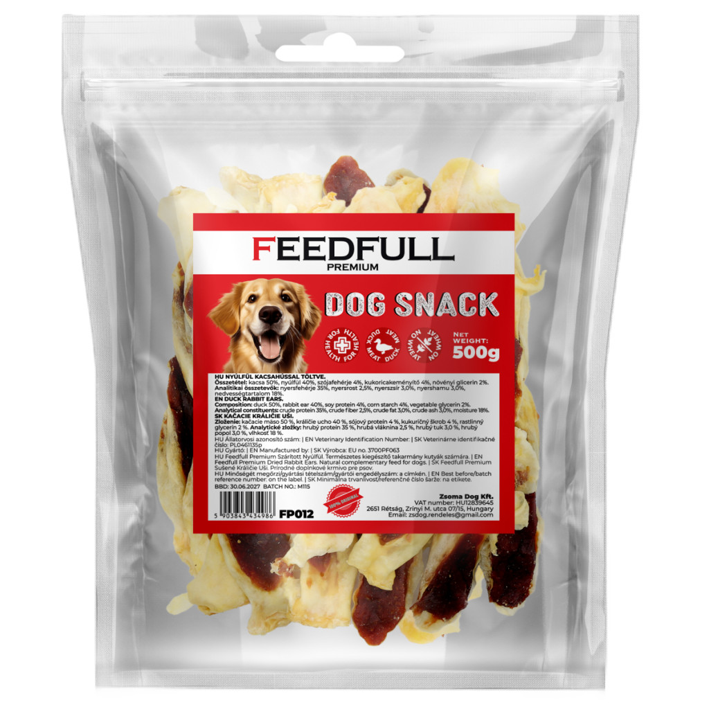 Feedfull Prémium Nyúlfül kacsahússal töltve kutya jutalomfalat 500g (FP012)