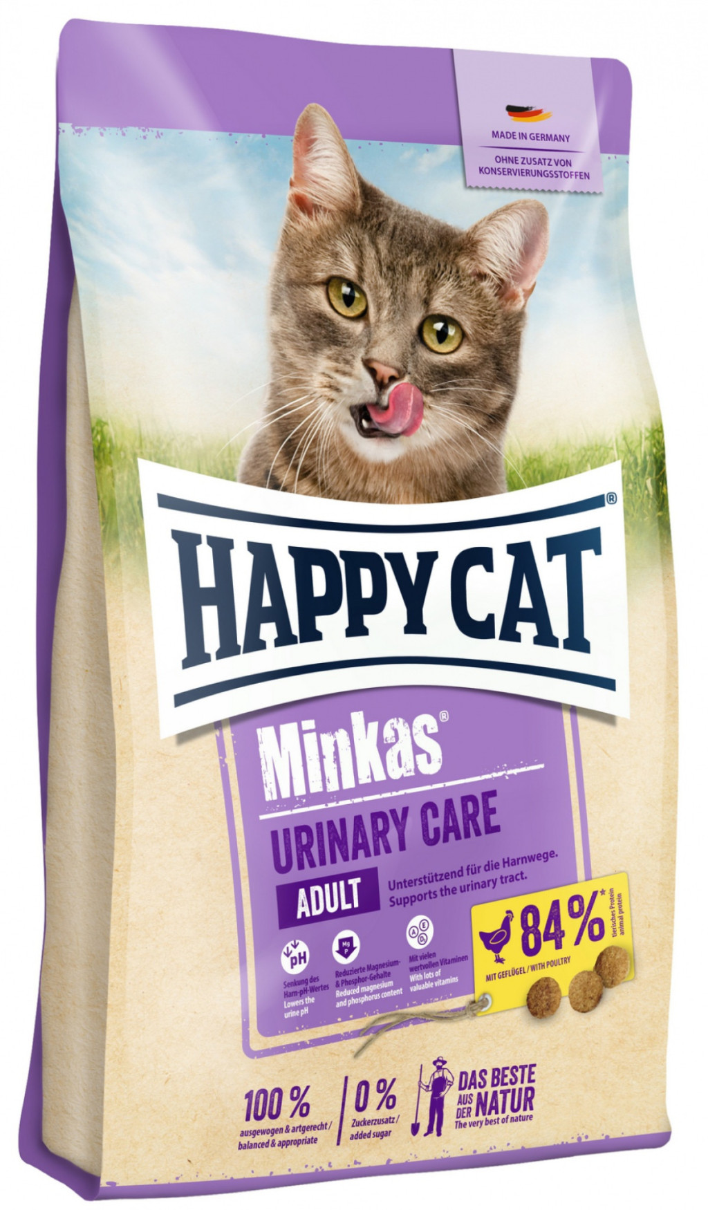 A Happy Cat Minkas Urinary Care egy kímélő és kiegyensúlyozott teljes értékű állateledel felnőtt macskák számára.