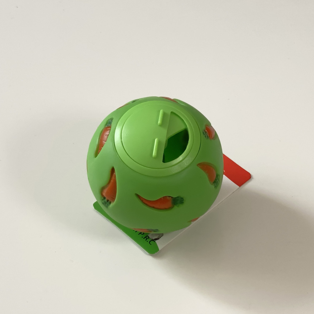 Jutalomfalattal tölthető kemény műanyag labda 8cm - ZÖLD, répa mintával