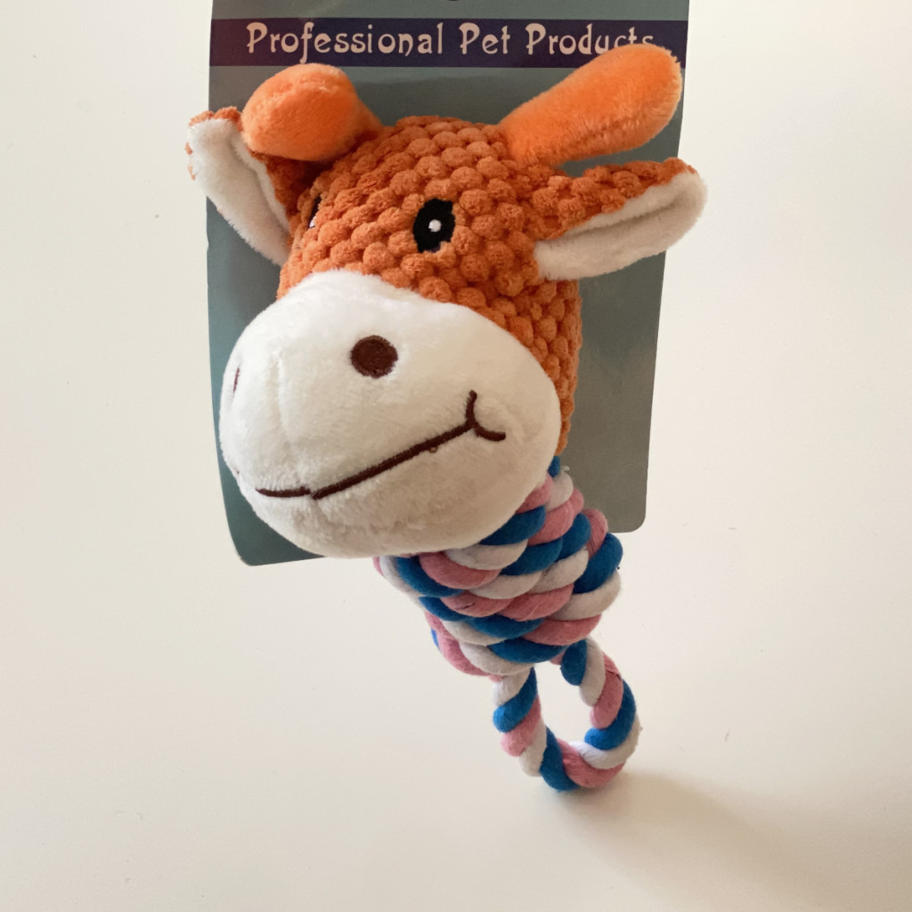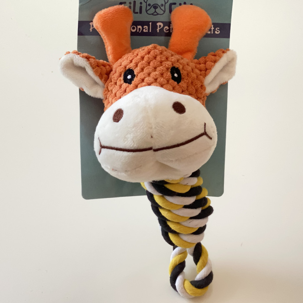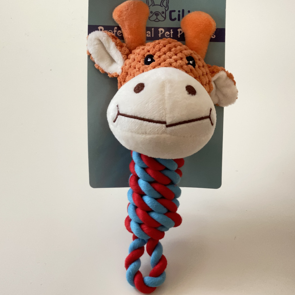Kemény rágókötél plüss zsiráf 20cm - különböző színekben