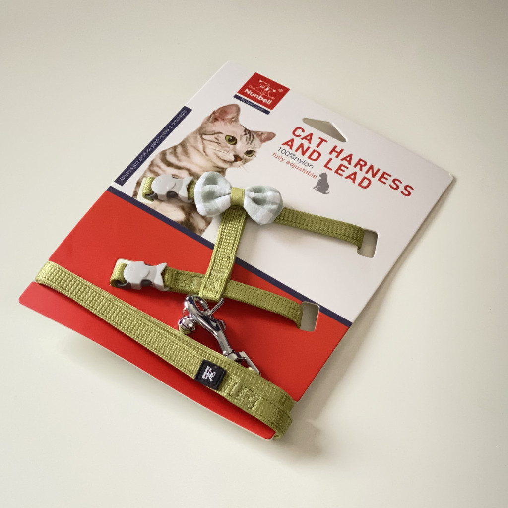 Macskahám szett, kockás masnival, csengettyűvel - BARNA
