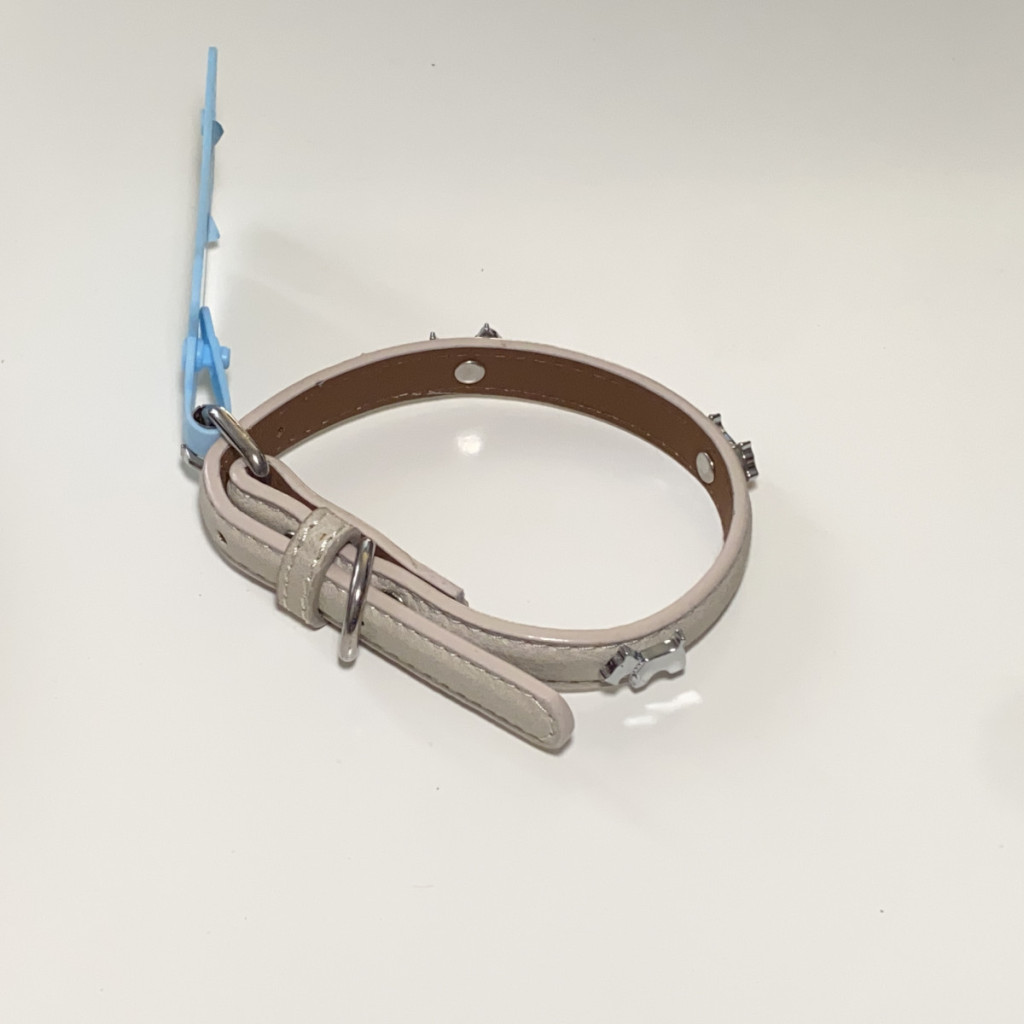 Műbőr nyakörv - kutyás szegecsekkel - 1,5cm x 27-38cm - bézs