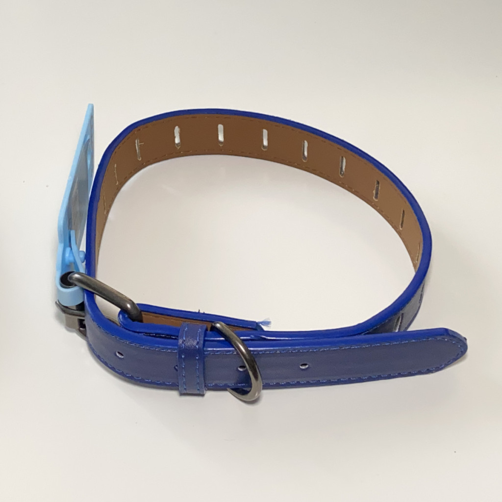 Műbőr nyakörv - lyukacsos - 2,5cm x 46-56cm - kék