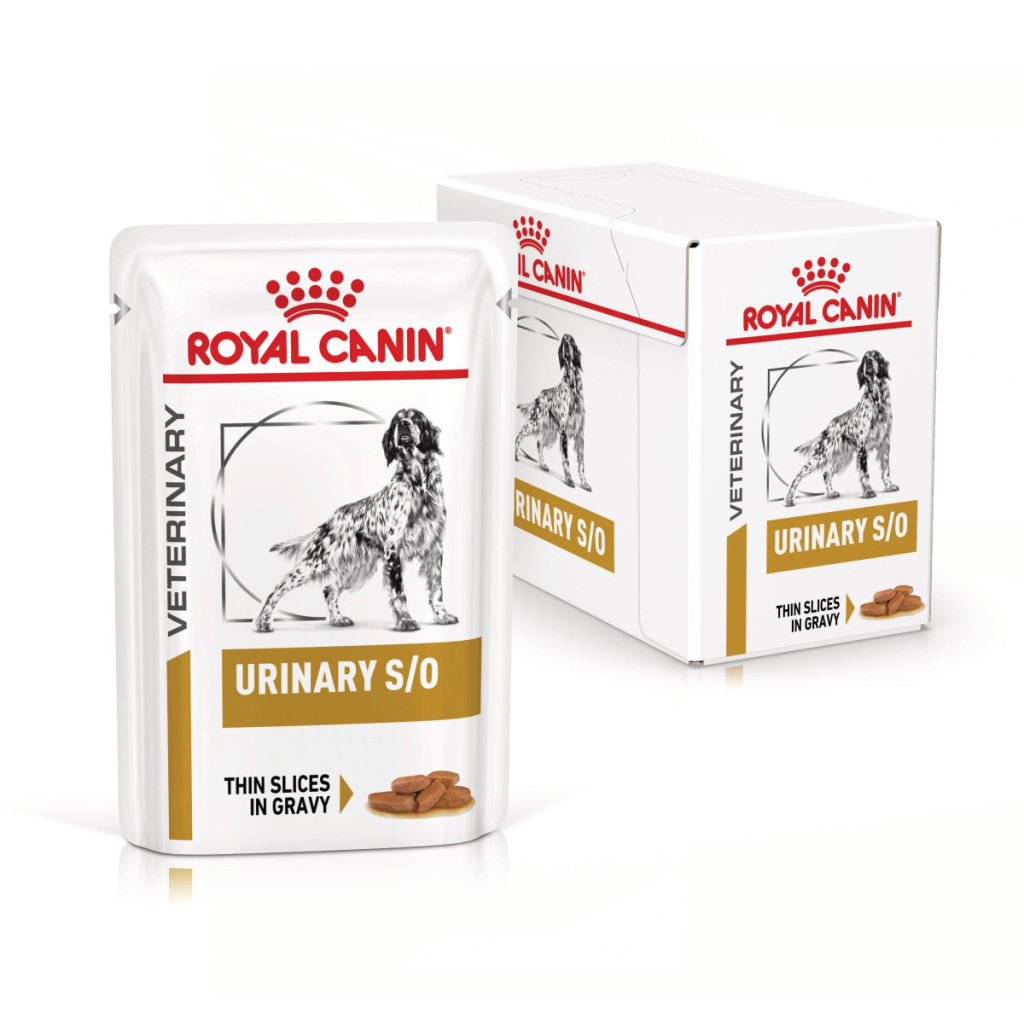 A URINARY S/O Thin slices in gravy, vékony szeletek pecsenyelében kutyák számára készült teljes értékű nedves diétás állateledel, mely feloldja a struvit köveket és csökkenti azok újbóli képződését vizeletsavasító tulajdonságának és alacsony magnézium-, valamint csökkentett, de kiváló minőségű fehérje-tartalmának köszönhetően. JAVALLATOK: Felhasználás előtt állatorvos véleményének kikérése javasolt. A URINARY S/O állateledelt 5-12 hétig etesse a struvit kövek feloldására, és 6 hónapig a struvit kövek újbóli előfordulásának csökkentésére. Mindig álljon rendelkezésre víz.