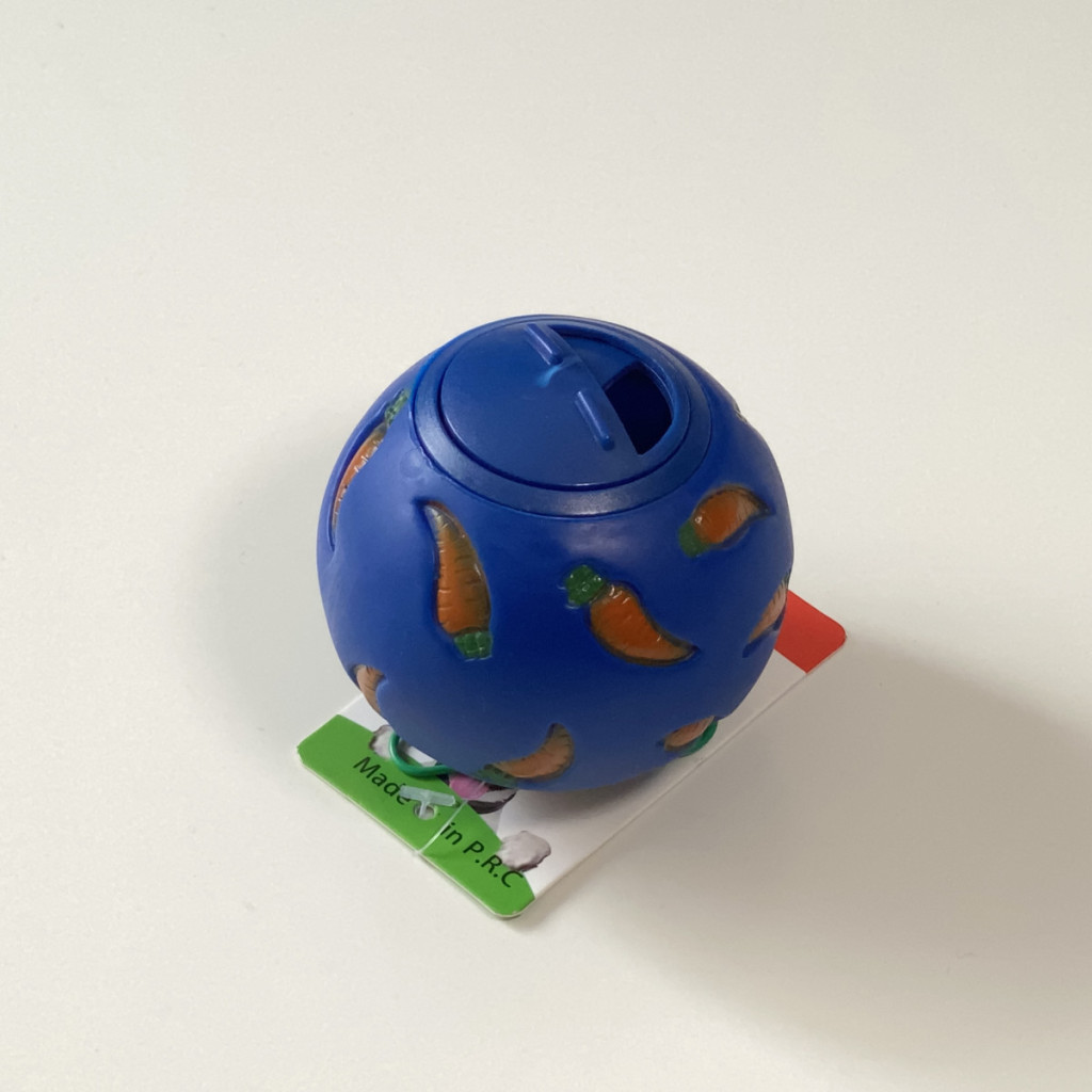 Jutalomfalattal tölthető kemény műanyag labda 8cm - KÉK, répa mintával